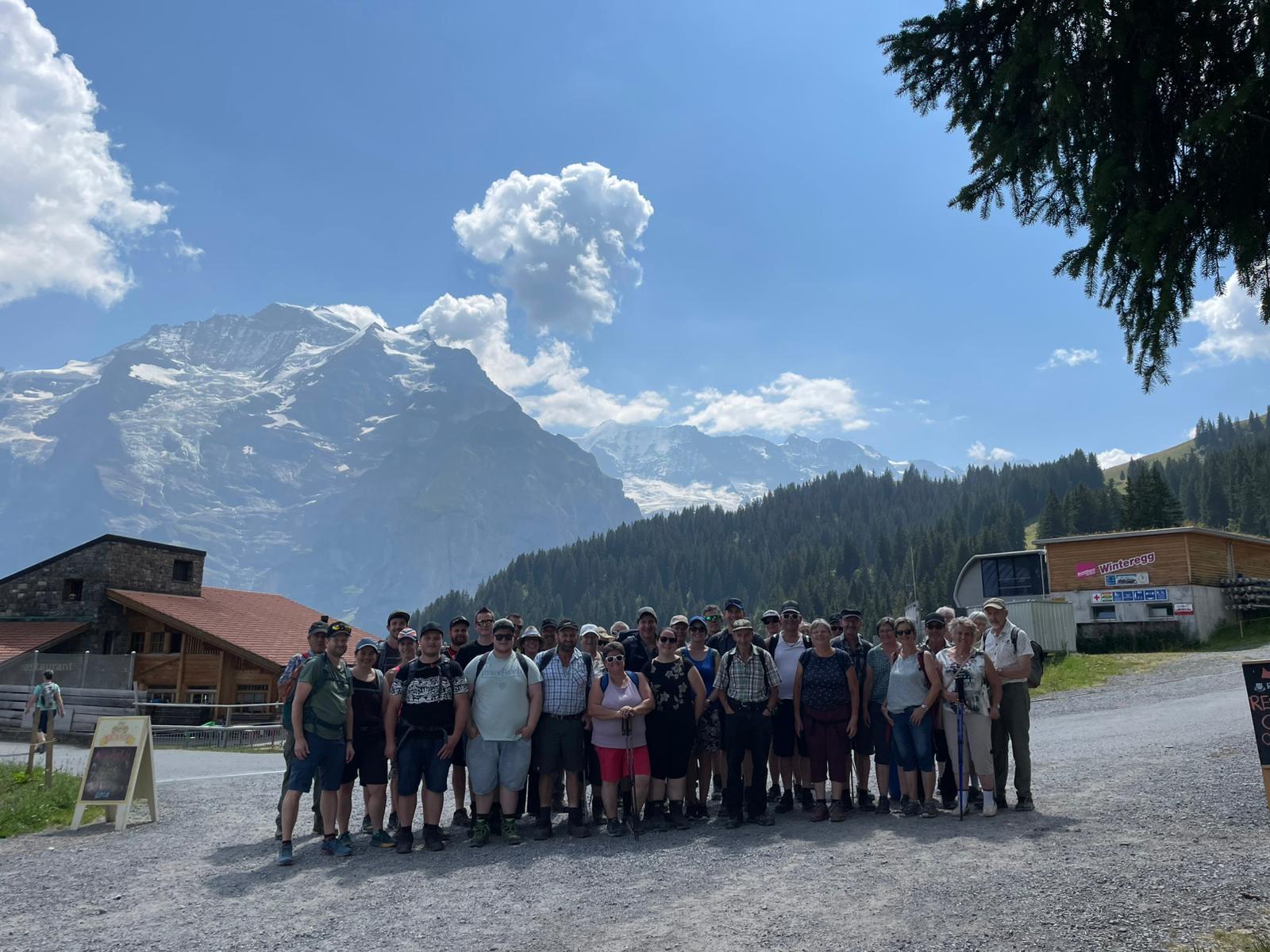 Die diesjährige Reise führte uns von Lauterbrunnen auf die Grütschalp und dann auf Mürren. Spontane Ständli erfreuten nicht nur die mitgereisten Ehrenmitglieder und Partner sondern auch die vielen Touristen in Mürren.